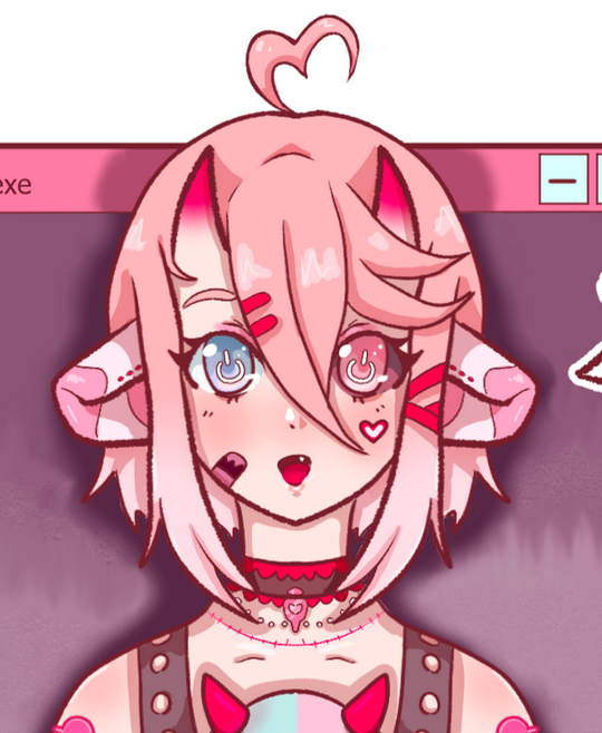 ani/manga, pinks, blues, candy, food!! i really like food!! other vtubers, blue exorcist, soul eater, vampires and monsters, music (j-pop/rock, idol music, emo music), subcultures and fashion, old technology, 90's/y2k vibes
